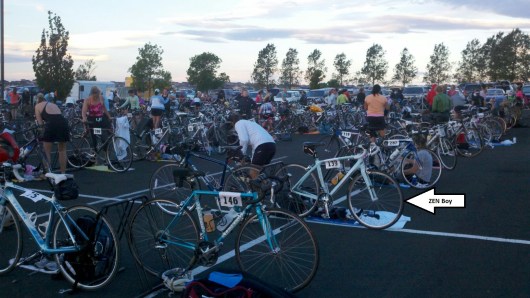 The transition area opened at 5:30 a.m., I was there. I picked my spot, racked my bike and setup my stuff. I then mentally, walked through the different parts of the race such as exit door from Pool into transition area, Bike Start, Bike Finish, Run Start, Finish!