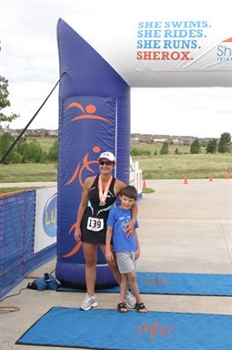 I was off and running! Running after biking feels weird, especially after a longer ride, which is for a later post, but even after a 12 mile bike ride you are not running on “fresh legs”. Your feet and legs are not moving in fluid motion but after about 5 minutes or so things start to loosen up. Each mile is marked, and I swear that the first mile is actually 2-3 times further than that. It seriously seems that the first mile takes FOREVER, mile two and three seem better. My run was uneventful and while I was exhausted by the time that I saw the finish line ahead, I was thrilled. As I pressed forward and crossed the finish and timer chip was removed. I saw my guys and heard my time. My goal from Cary was 1:30 and I had finished with a time of 1:21. My goal of finishing, finishing strong and finishing fast was achieved. The fast part is all relative, but for a former FAT girl, first time age-grouper triathlete in her late forties my time was good as it earned me a 2nd place.